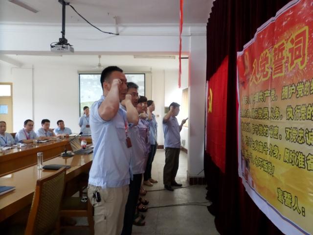 伴著雄渾的國歌聲,公司所有黨員干部全體起立,向黨旗致禮。隨后公司機關(guān)黨支部書記王子星宣讀了2013年預(yù)備黨員轉(zhuǎn)正以及接收2014年新預(yù)備黨員的決定。7名新預(yù)備黨員在黨委副書記李應(yīng)濤的領(lǐng)誓下,進(jìn)行了莊嚴(yán)的宣誓。隨著新黨員錚錚誓詞的落地和預(yù)備黨員代表發(fā)言完畢后。公司還特別邀請到十堰黨校黨務(wù)處李教授宣講以“踐行核心價值觀、發(fā)揮黨員先進(jìn)性”為主題的黨課。