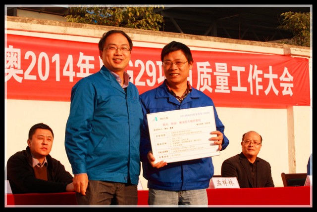 到會領導為G29項目組成員頒發(fā)了戰(zhàn)表,為下一階段的改善制定新的挑戰(zhàn)目標,全體員工見證了這一重要時刻,并在會議現(xiàn)場用熱烈的掌聲表達了完成任務的信心和決心。